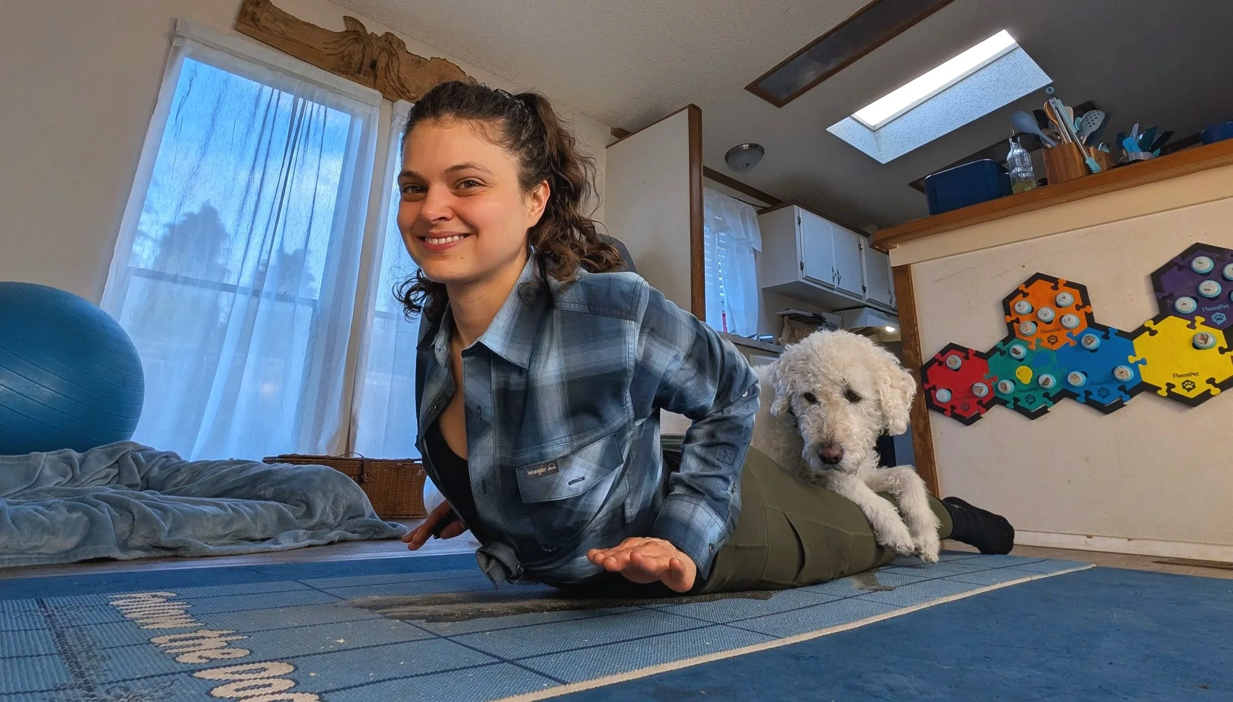 Example: Practicing asana or joyous movement and stillness with your pet, whether they are participating or resting nearby.